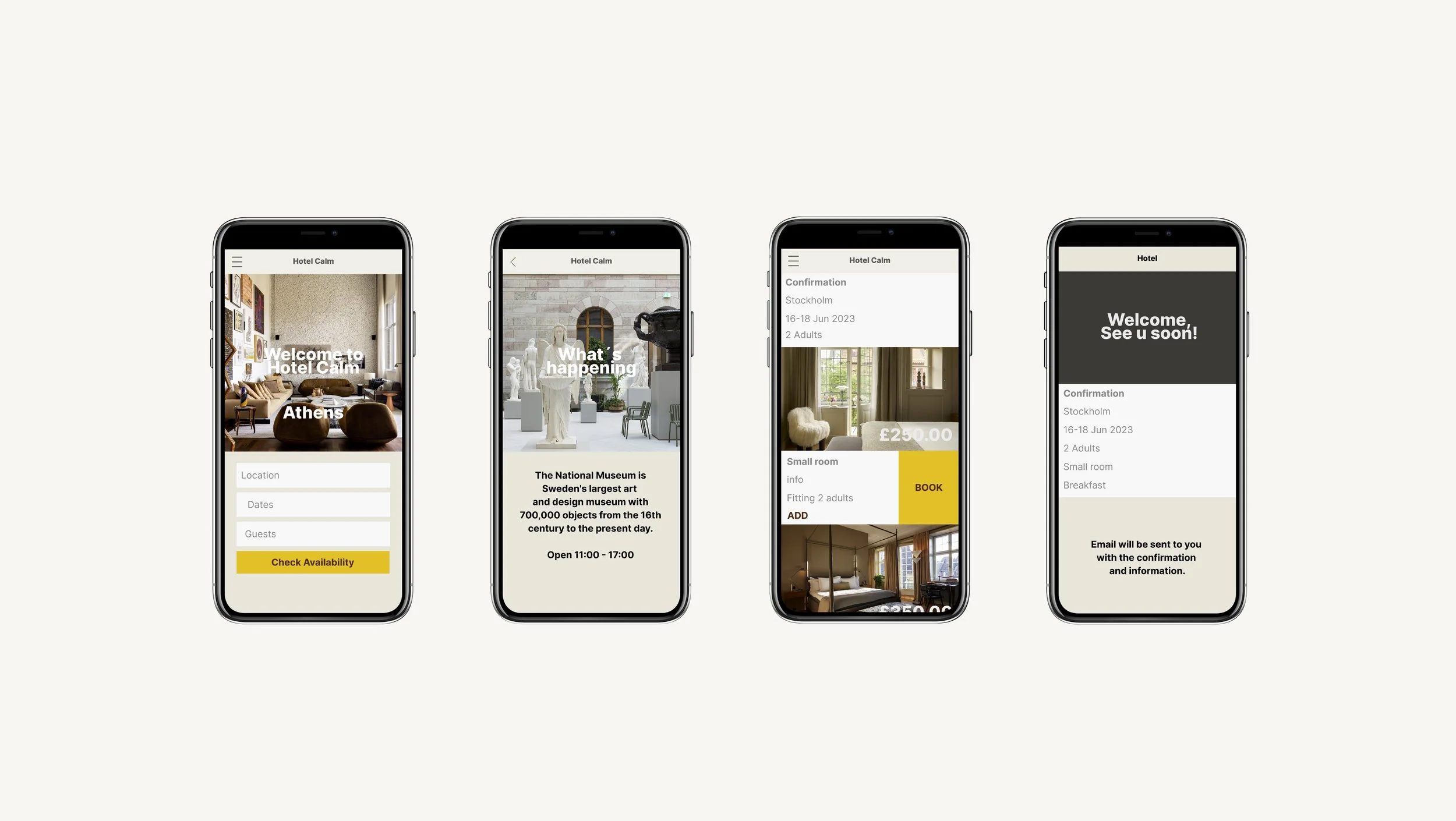 This is an app that shows the feel and experience of the hotel with enhanced images and a overall coordinated ambience. It take the app user easily and smoothly through the booking process. The confirmation gives the user control and makes the app very clear. See the prototype here.