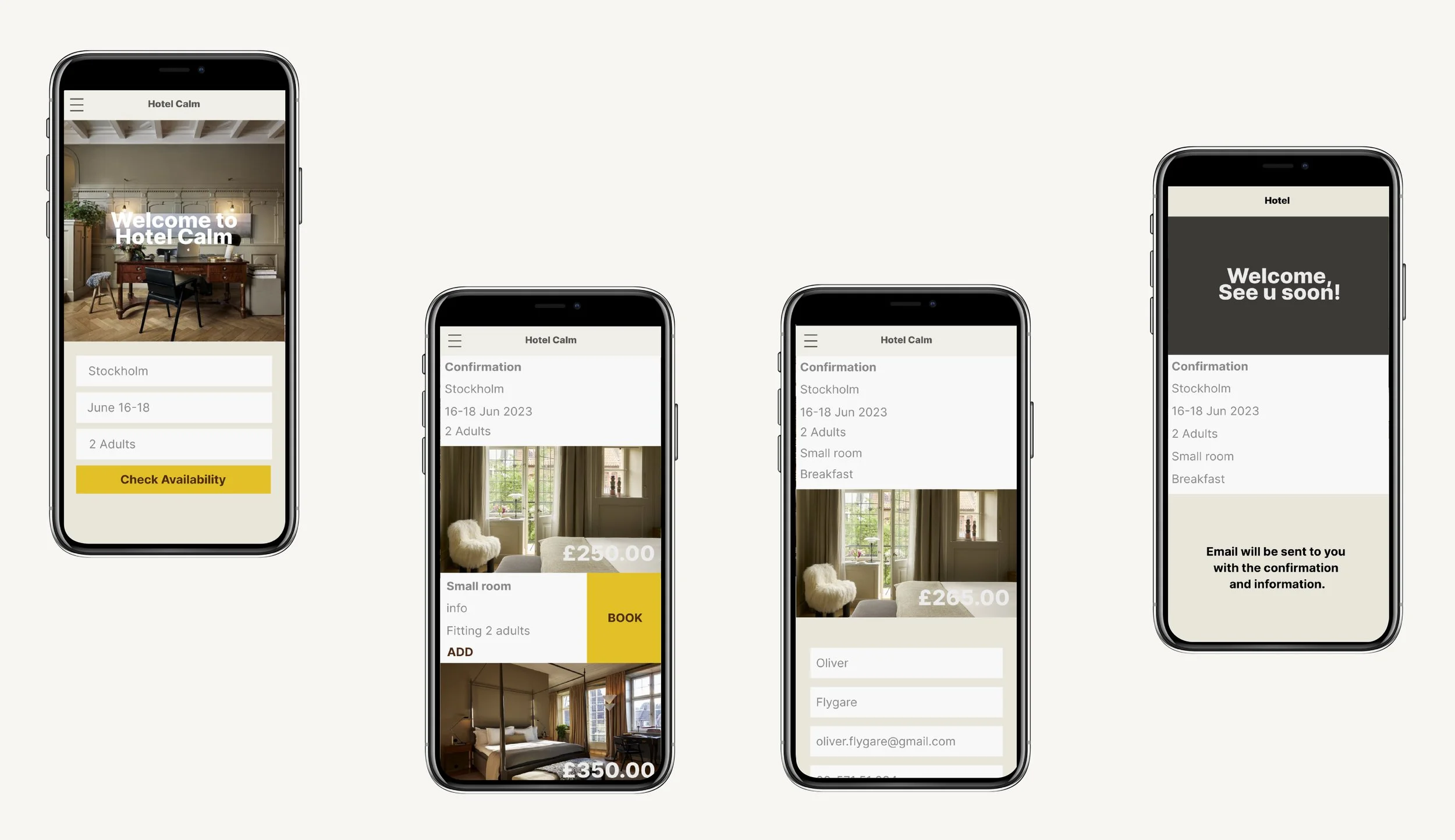 As a receipt, the confirmation serves as clear information for the user who follows along through the flow in the app. When the user makes a selection, it is added to the confirmation screen. When the booking is made, the confirmation screen is shown as part of the final screen.