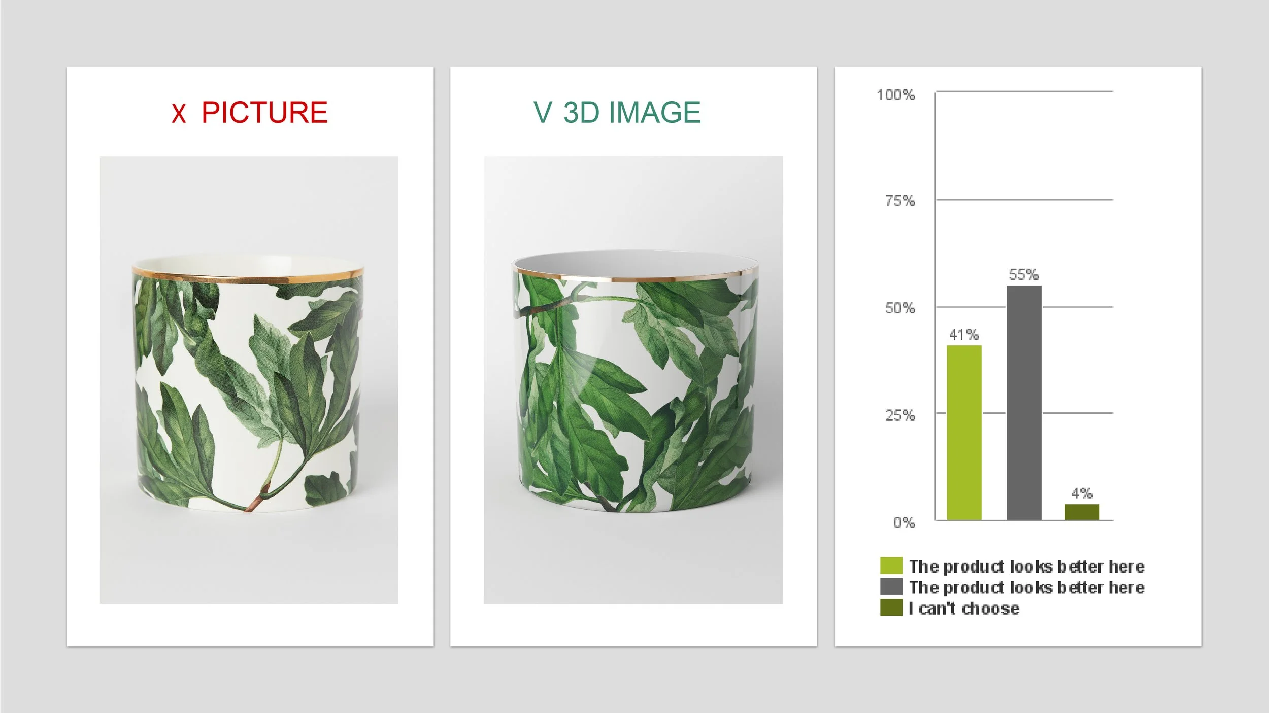 Do the 3D images make the product look ”worse” than in the real pictures?