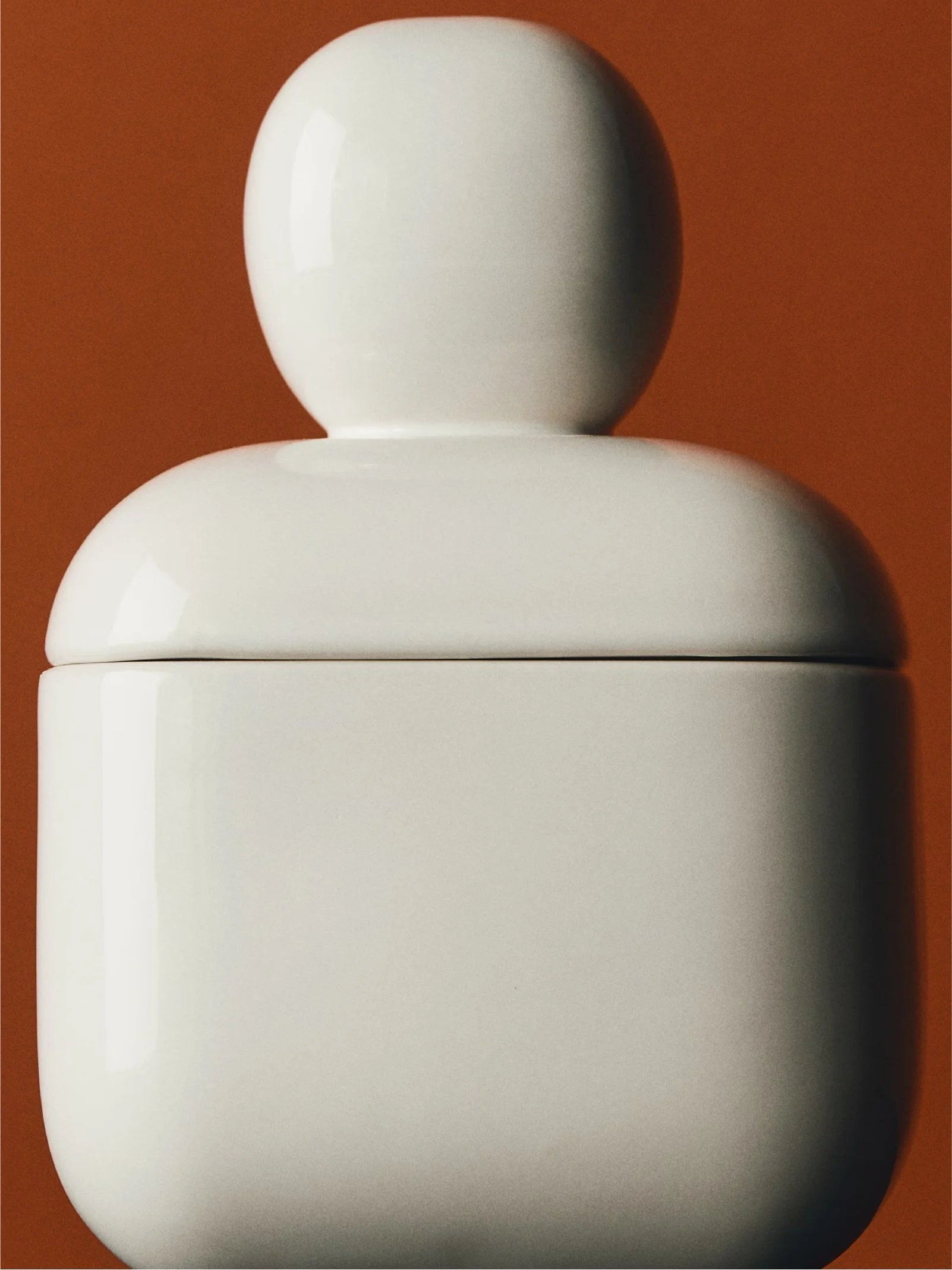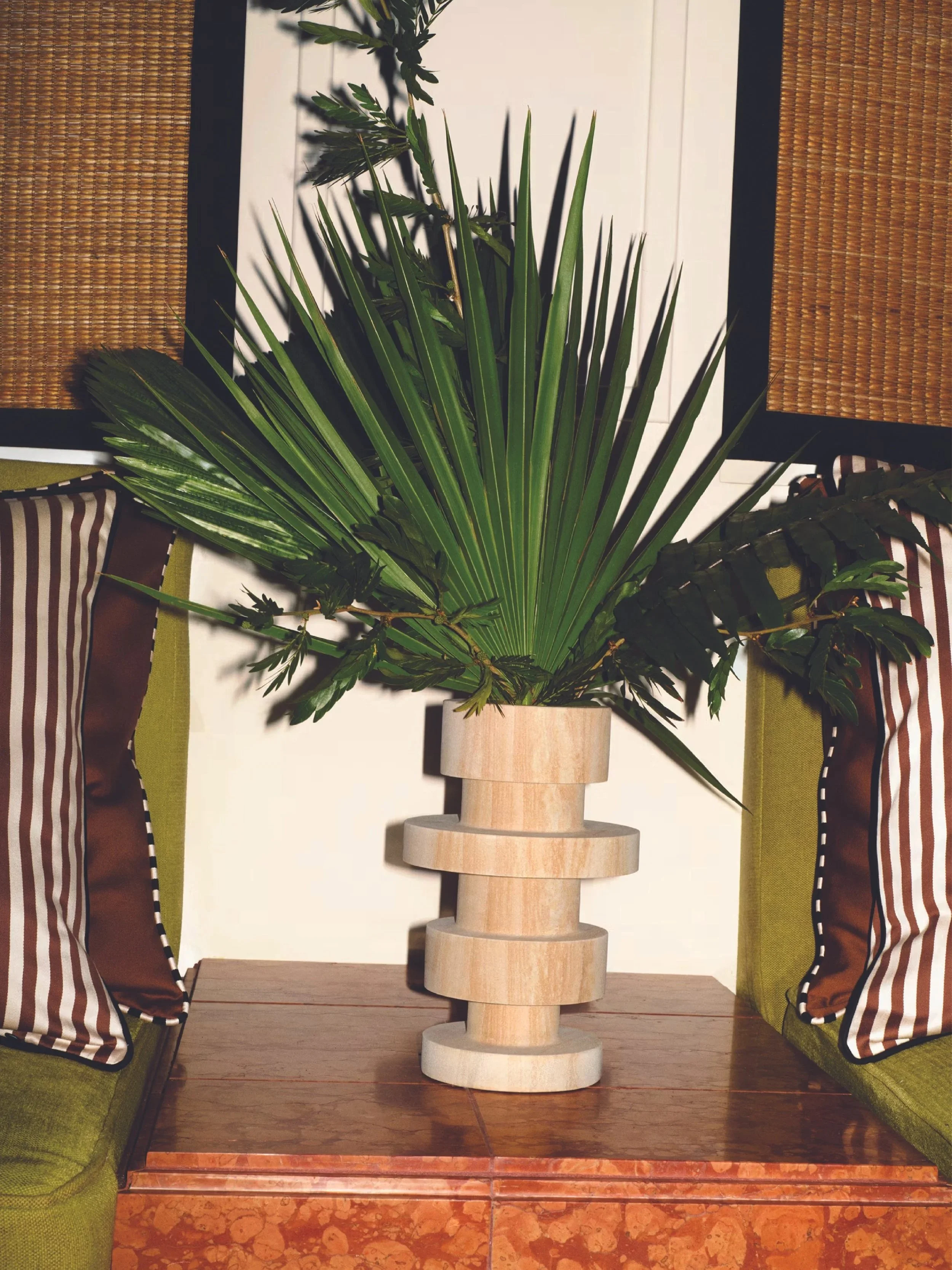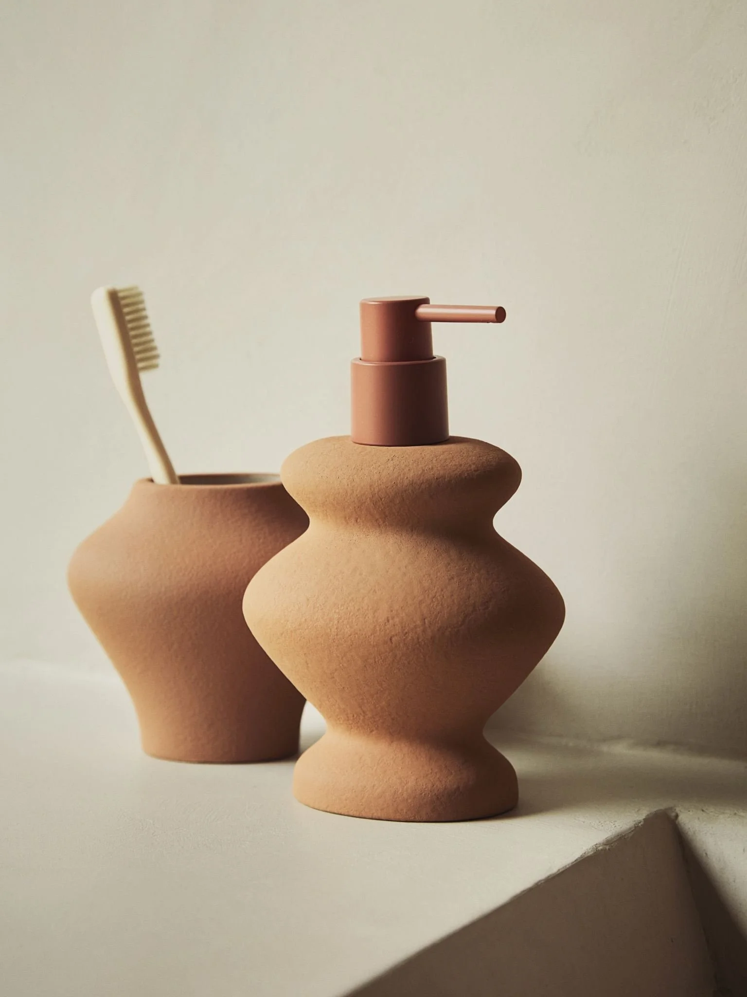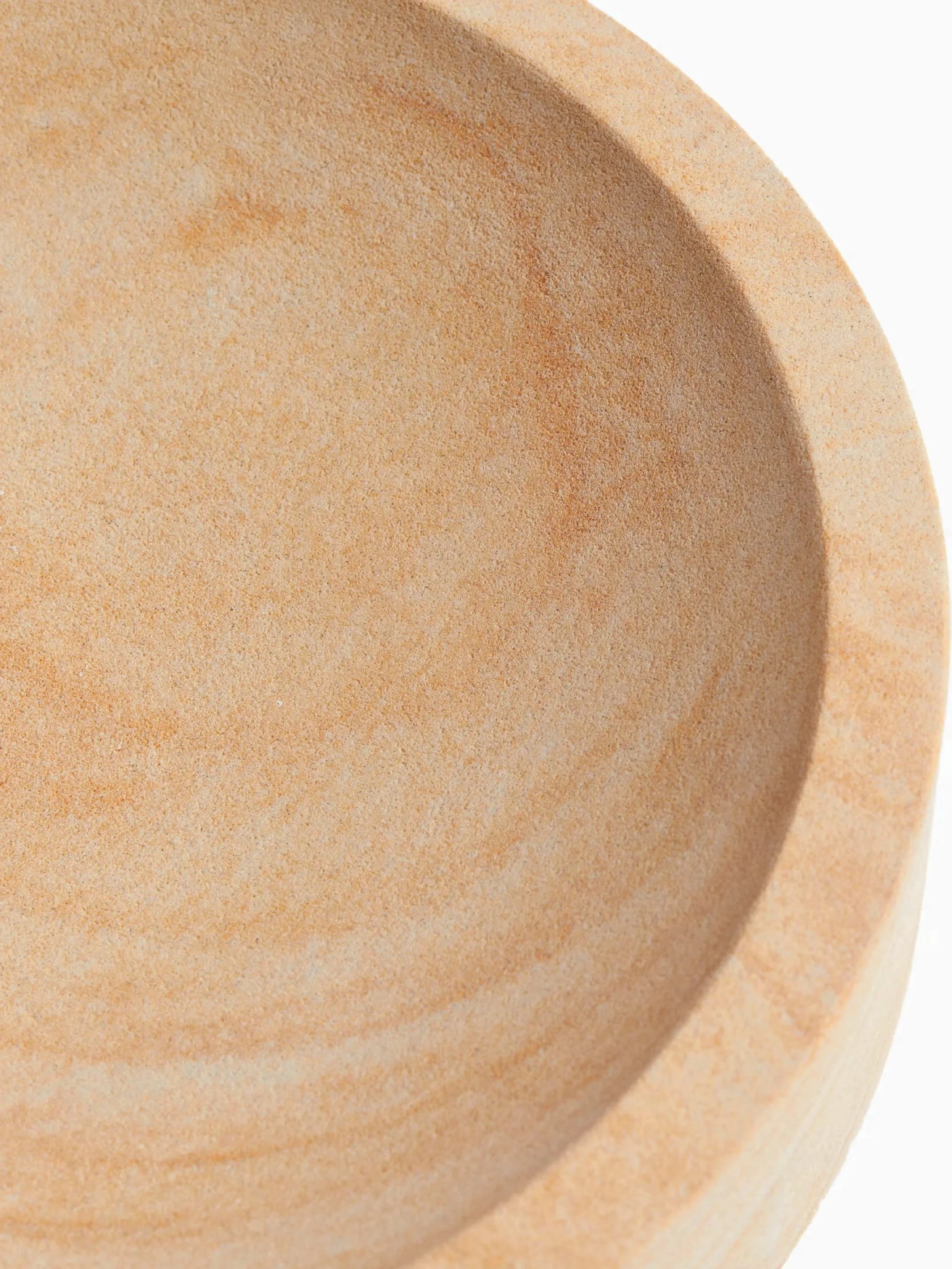 A product group in sandstone with flat sharp cylinders stacked to create a visual movement.