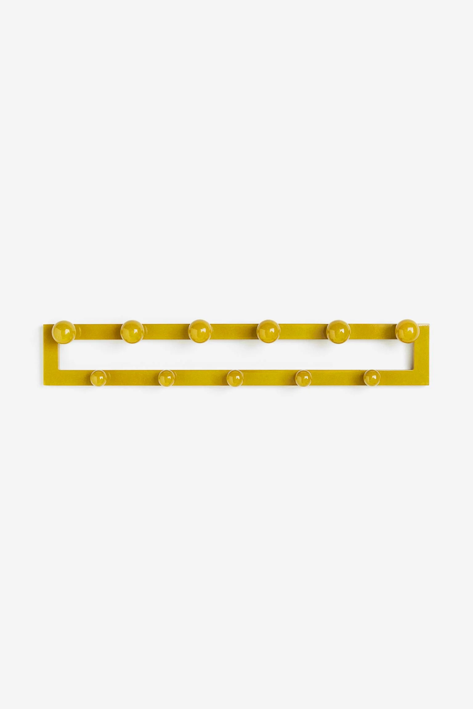 Rectangular wooden hanger in a super glossy finish. Double rows of ball-shaped hooks. Key hole fittings at the back for easy hanging.