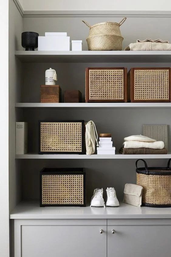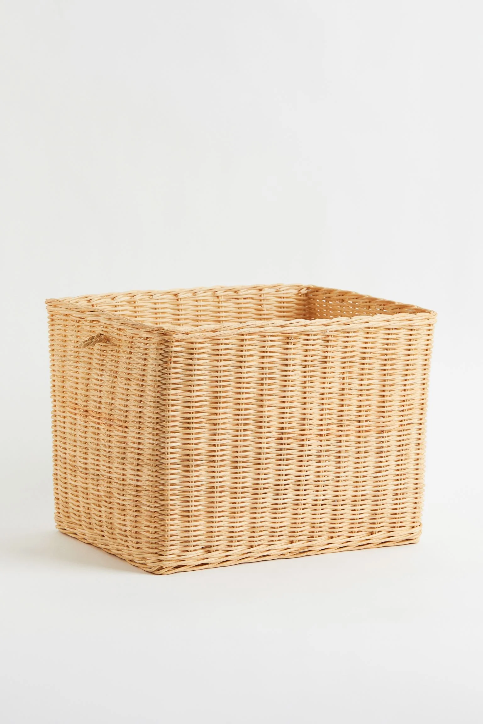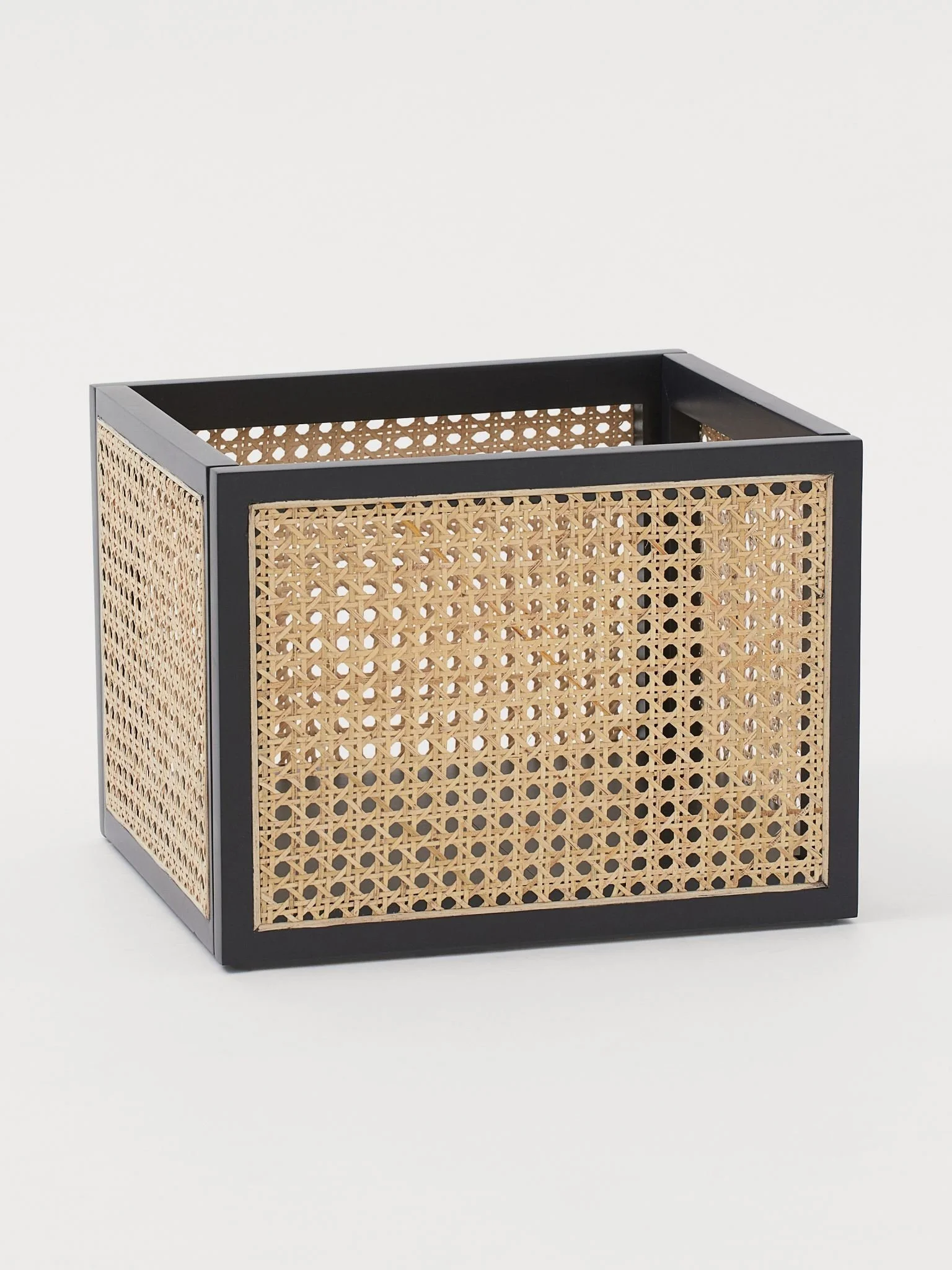 Rattan crate with wooden frame. Easy to assemble, no screws required.