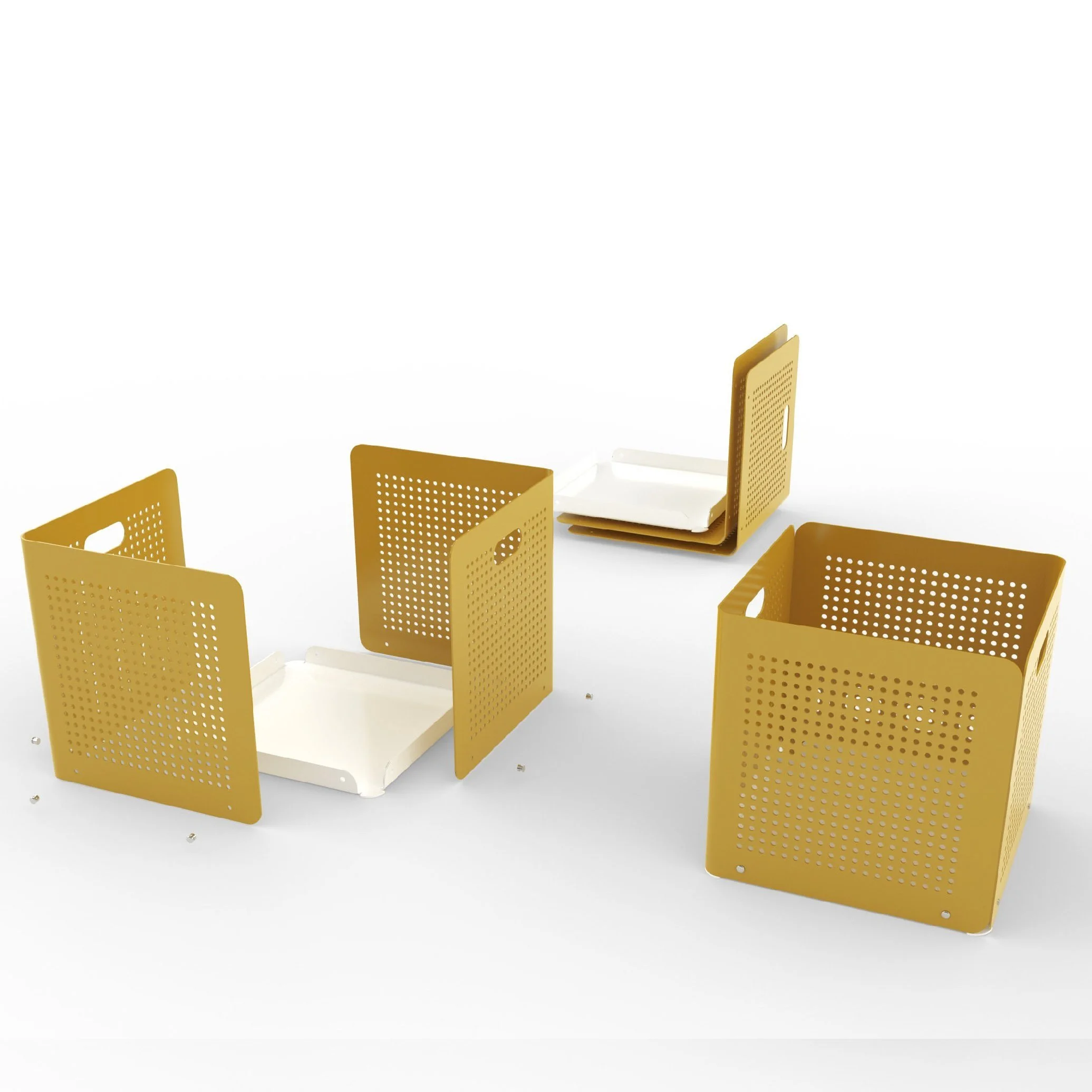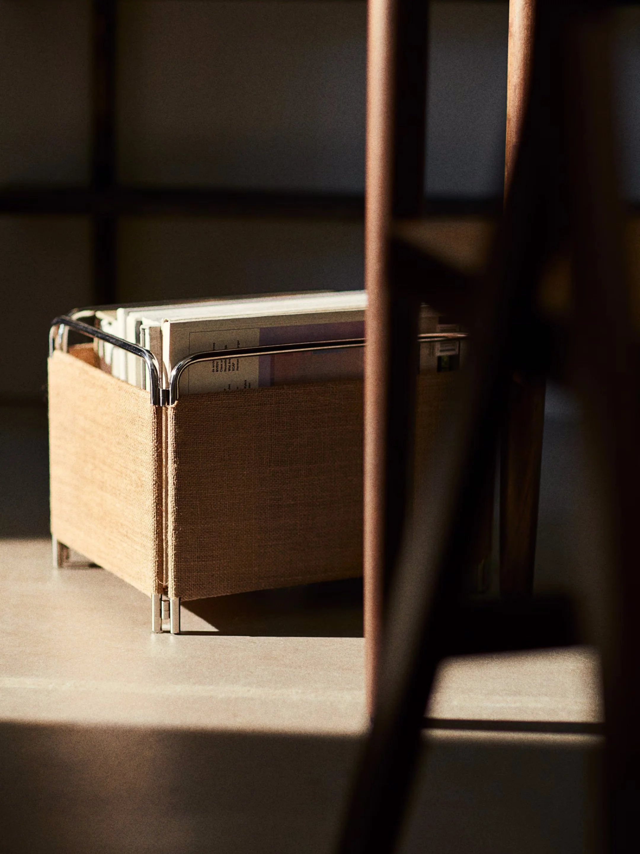 Foldable chrome frame with jute weave at all sides. Good for your livingroom organization.