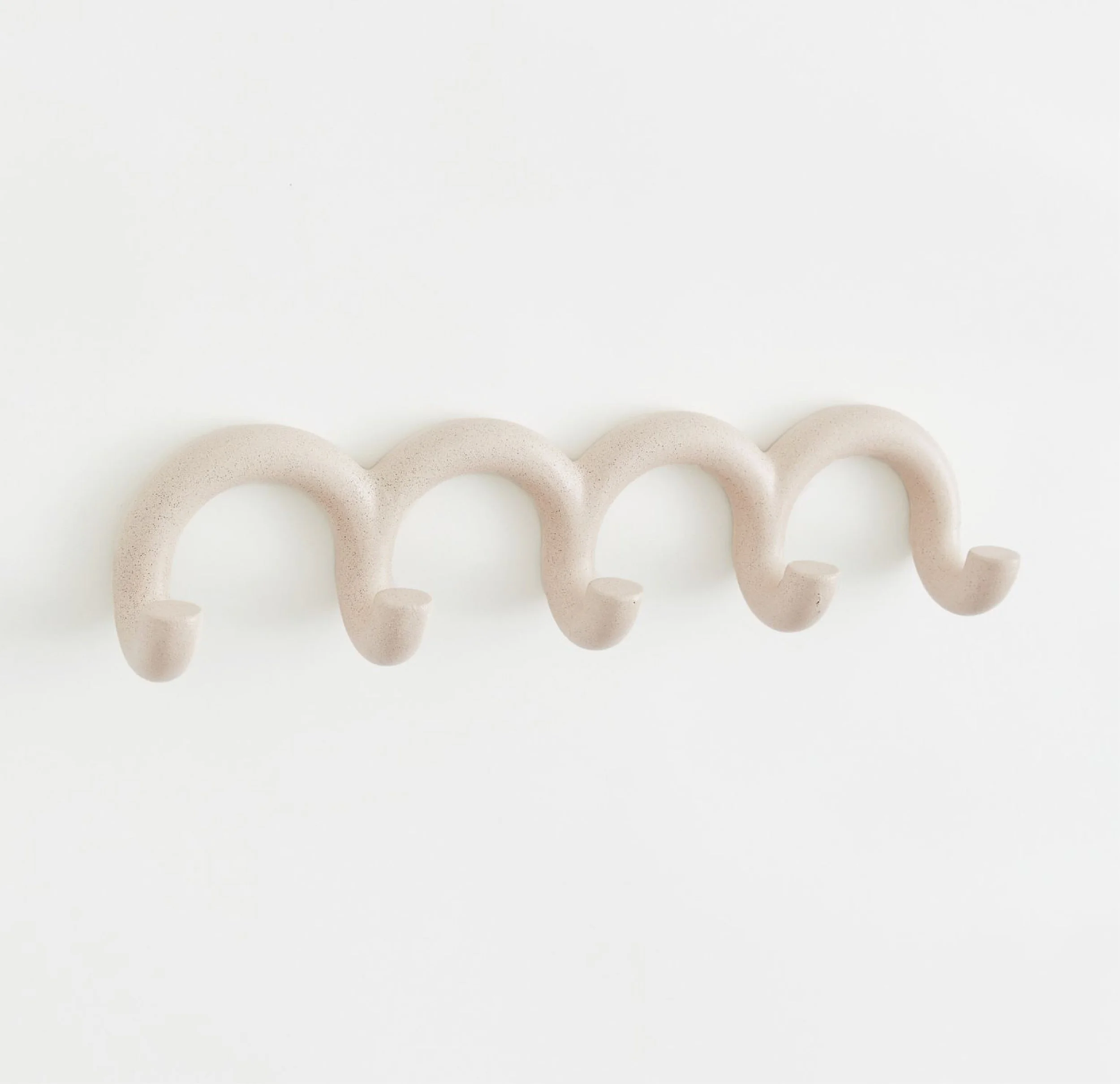 A charming mini shelf with a hook underneath in metal. The shelf has pre-drilled holes for easy hanging.