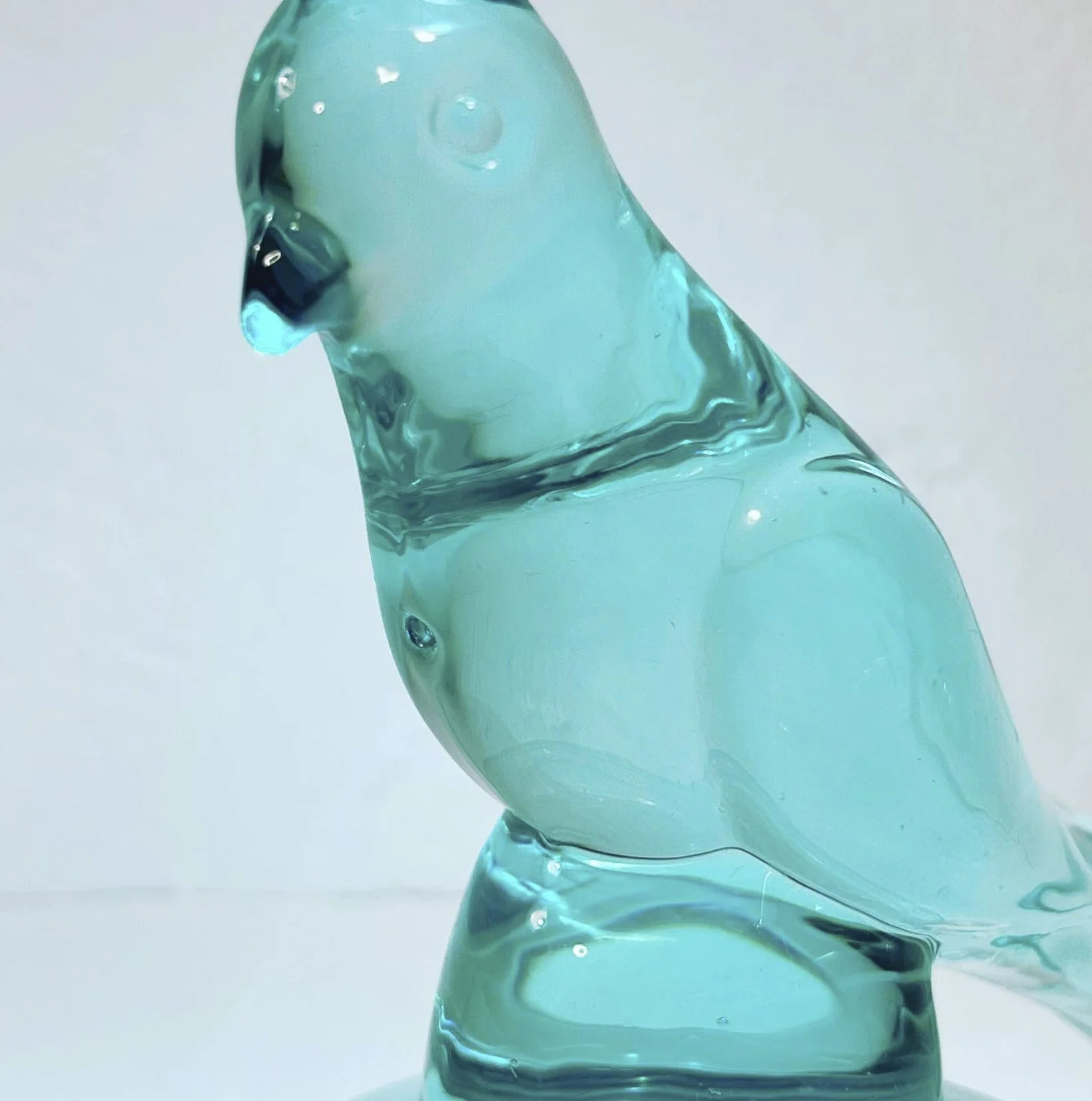 A contemporary frosted glass soap dispenser with a plastic pump head.