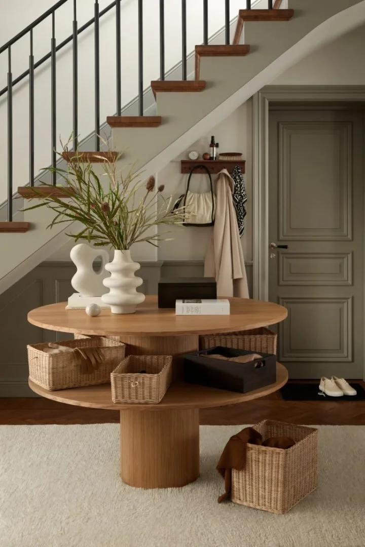 A small, round wooden box. The box is two-part and can be used for storing, for example, jewelry and other small things.